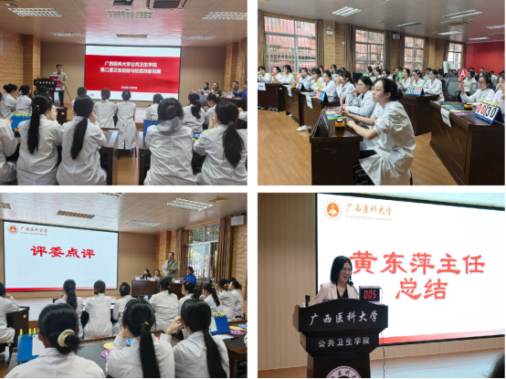 决赛现场气氛紧张热烈,互动踊跃。在答题环节,各队沉着应对、配合默契,展现出扎实的专业基础与良好的团队协作能力。随后,评委针对选手表现进行精准点评,直指关键,给予宝贵指导。卫生检验与检疫系主任黄东萍教授在总结讲话中充分肯定了竞赛的意义,并对同学们的成长提出殷切期望。整场比赛节奏紧凑、互动积极,充分展现了公卫学子昂扬向上的精神风貌与精益求精的专业素养。