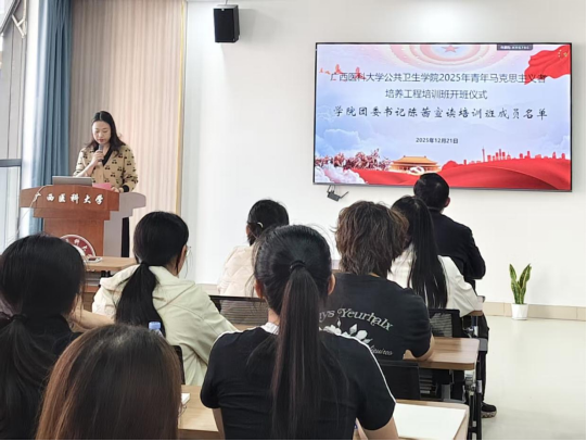 当前位置:学生工作2025年12月21日下午,PG电子游戏平台 在武鸣校区党团活动中心举行2025年“青年马克思主义者培养工程”培训班开班仪式。PG电子游戏平台 党委书记邹云锋、团委书记陈茜出席仪式,“青马班”全体学员及院学生会骨干参会。