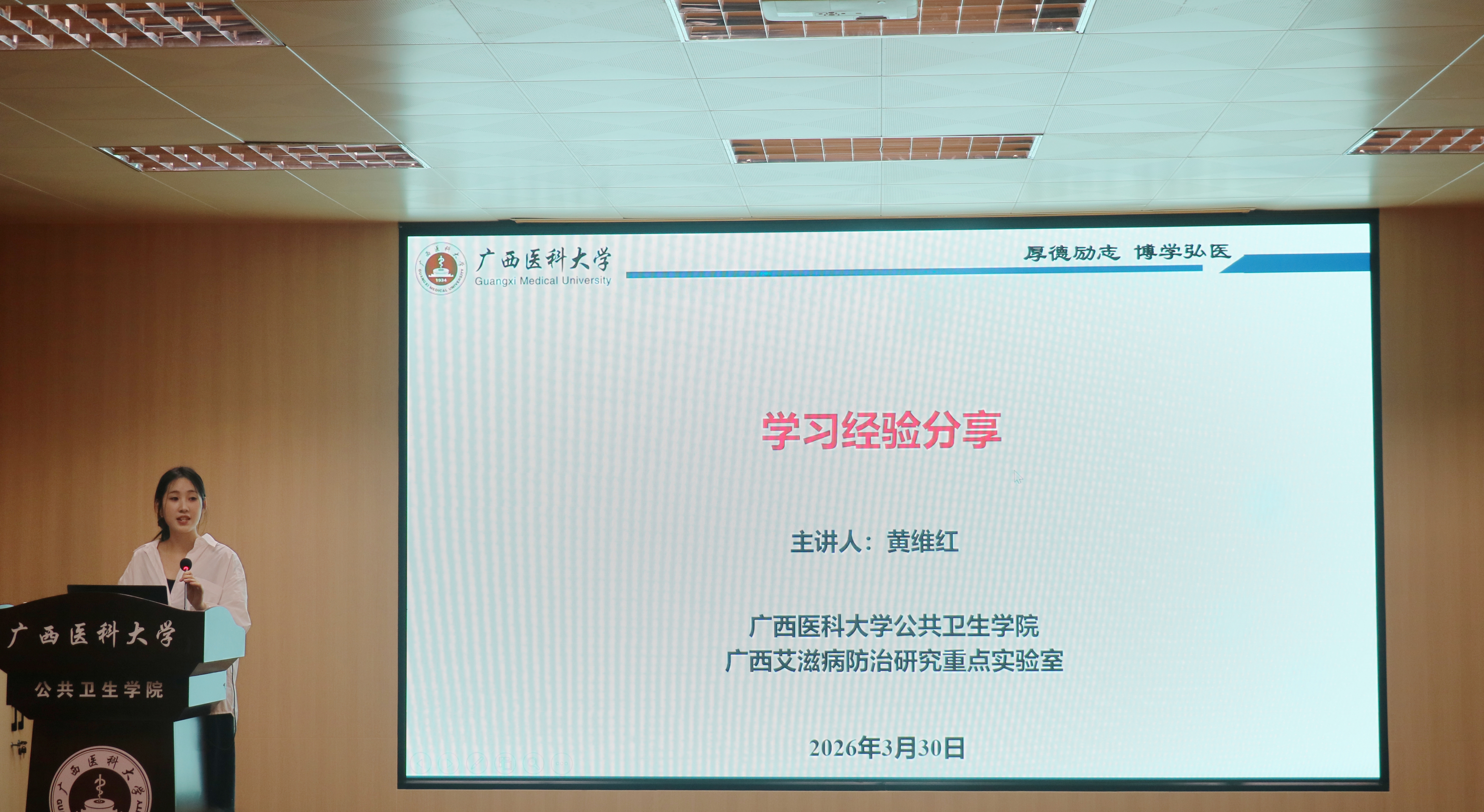 当前位置:学生工作为切实提升研究生科研素养与学习能力,搭建研究生学术交流与经验共享的优质平台,3月30日下午,“叶馥荪”研究生学术论坛第十期在105馆报告厅顺利举办。本次论坛以学习经验分享为主题,邀请PG电子游戏平台 2025年研究生国家奖学金获得者、2024级流行病与卫生统计学硕士研究生黄维红同学作为主讲嘉宾,为同学们分享科研学习干货。