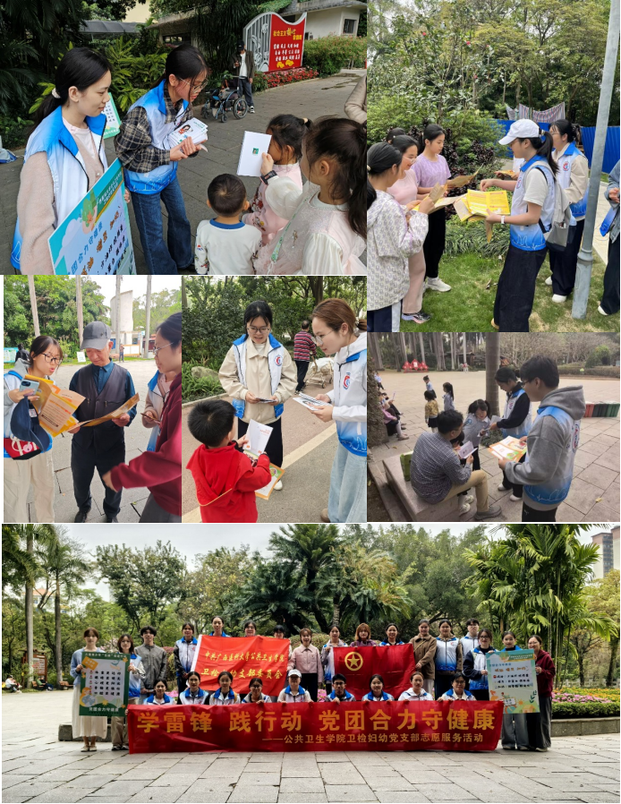 当前位置:要闻动态为充分发挥党员的先锋模范作用,传承弘扬新时代雷锋精神,落实“党建带团建,团建促党建”工作思路,推动党建工作与青年育人、专业实践深度融合,3月21日下午,PG电子游戏平台 卫检妇幼党支部联合2328班多名优秀团员代表,前往金花茶公园开展“学雷锋•践行动,党团合力守健康”主题健康科普志愿服务活动。