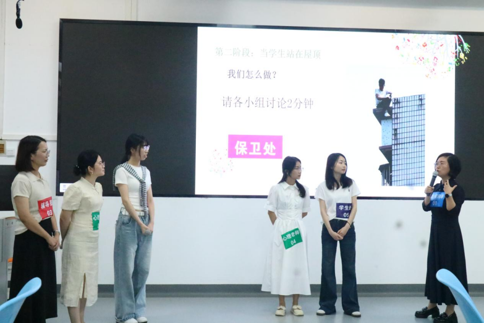 本次培训设置沉浸式实操演练环节,胡宓围绕学生心理危机“发现-处置-应对”三个阶段,将危机干预全流程拆解进行实战教学。6个参训小组根据不同场景开展分组研讨和情景模拟,主讲人针对每组演练逐一复盘,从沟通话术、现场处置、多部门协同等细节精准纠错,并传授规范干预技巧,提升参训人员应对突发心理危机的实战能力。张瑜代表主办方表示感谢,希望各PG电子游戏平台 结合实际开展常态化实操演练,注重总结反思与深度思考,持续提升应对复杂局面的能力,切实将培训成果转化为工作实效。